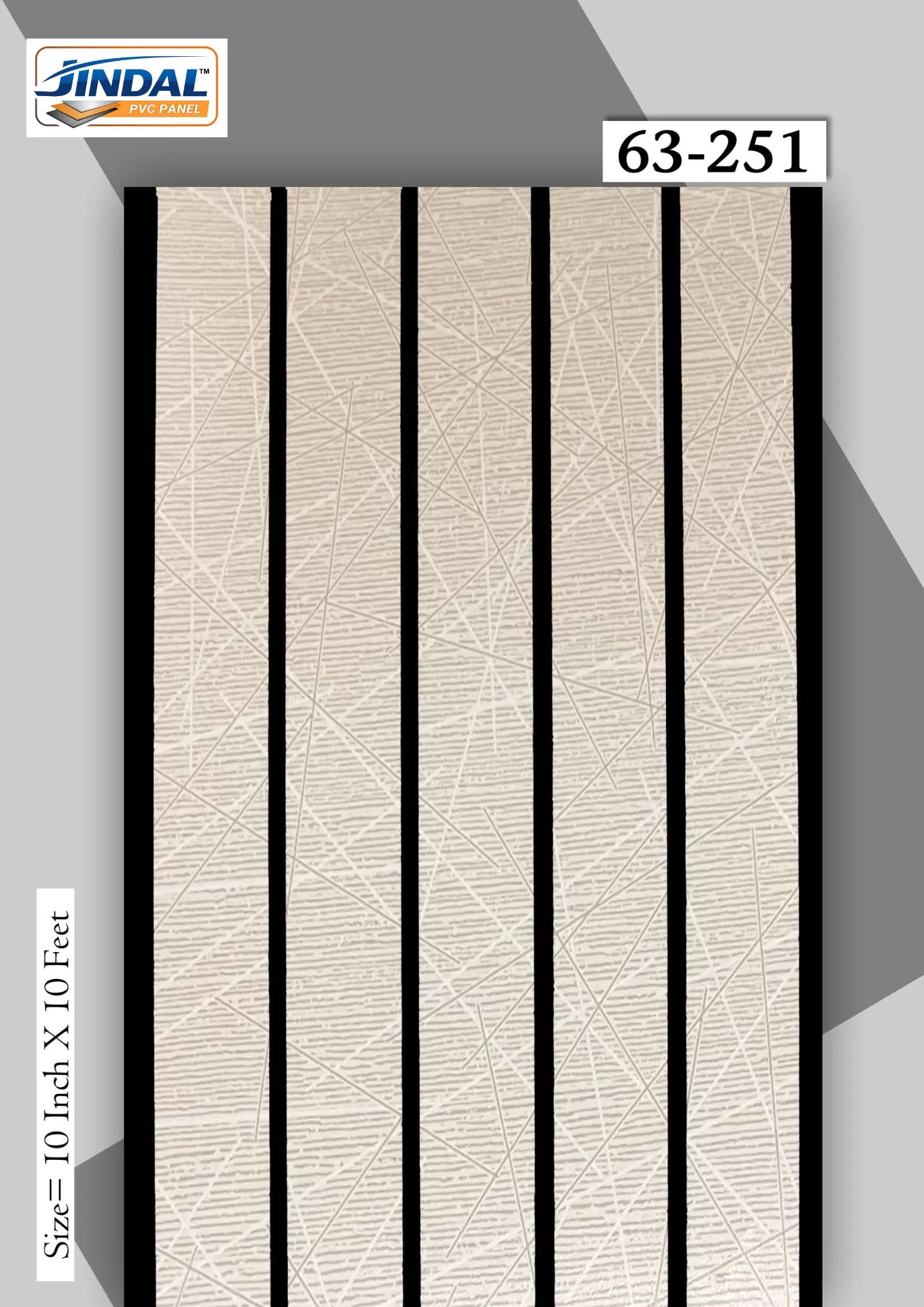 Brighten up your space with the Jindal 63-251. Featuring a soft beige background with an artistic abstract matrix texture, this panel is defined by bold black vertical grooves. The “5-Groove” design creates a stylish louvered look, making it perfect for TV units, bedroom headboards, and modern living room walls that need a warm yet contemporary touch.
